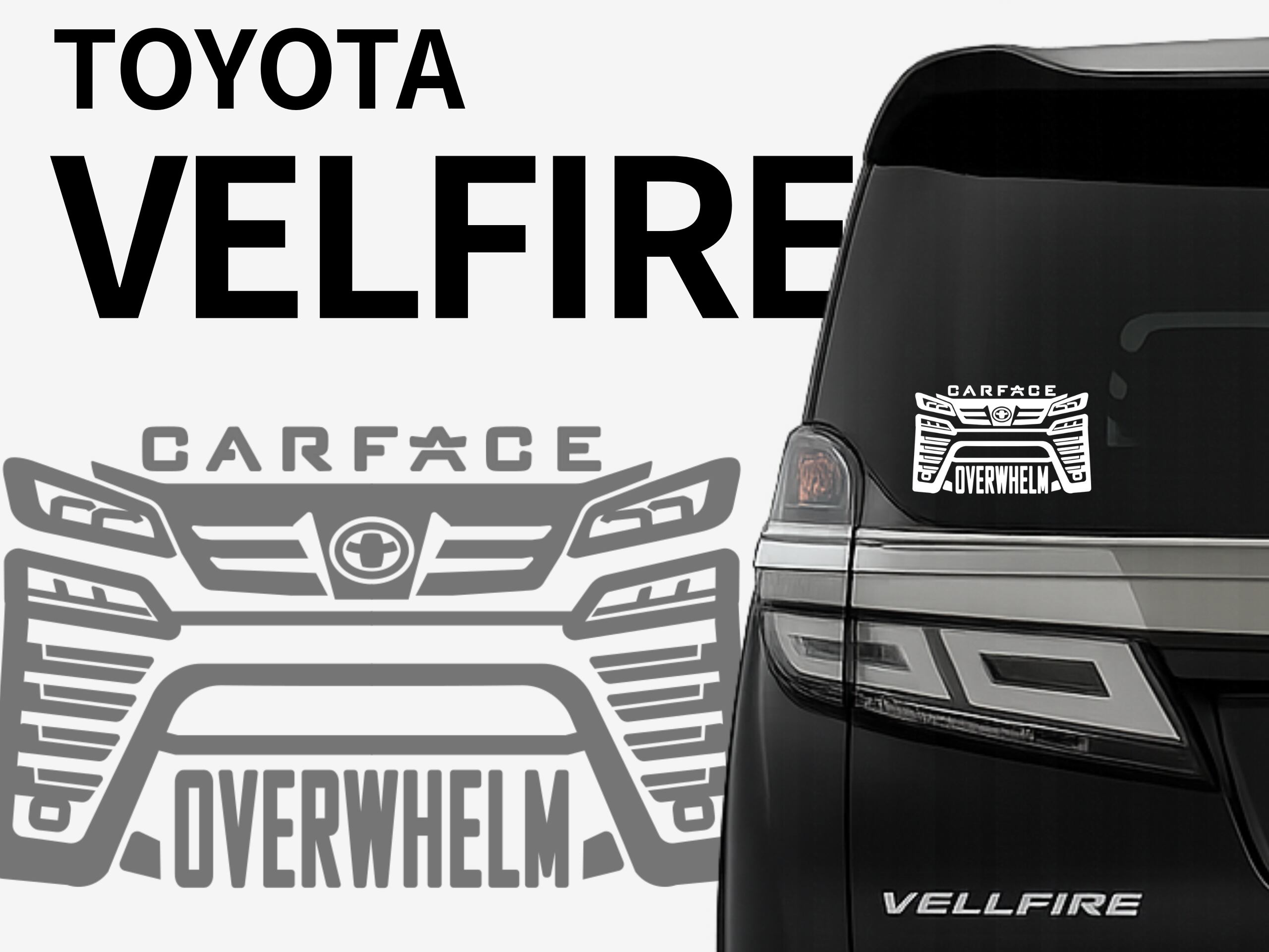 イメージワードには'圧倒する'という意味から"OVERWHELM"を選びました。他を圧倒する存在感を持つヴェルファイアに相応しいワードで存在感を意識してデザインしました。