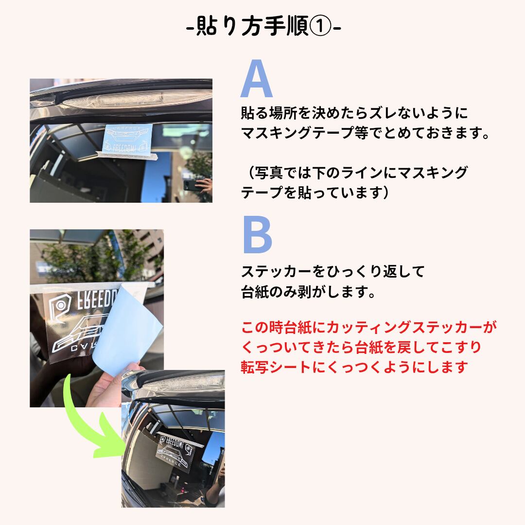 ①Aの転写シートにBのカッティングシートをくっつくようにCの台紙をゆっくりと剥がす